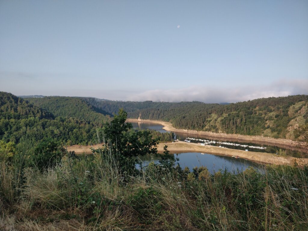 Depuis Saint-Privat-d’Allier je suis une vallée où le fleuve qui donne son nom au village slalome paisiblement. Pour le coup moi aussi je slalome, les virage s’enchainent et les kilomètres défilent. Déjà plus de 300 dans la journée, mes genoux font des craquements bizarre, il est temps de trouver un coin pour la nuit.