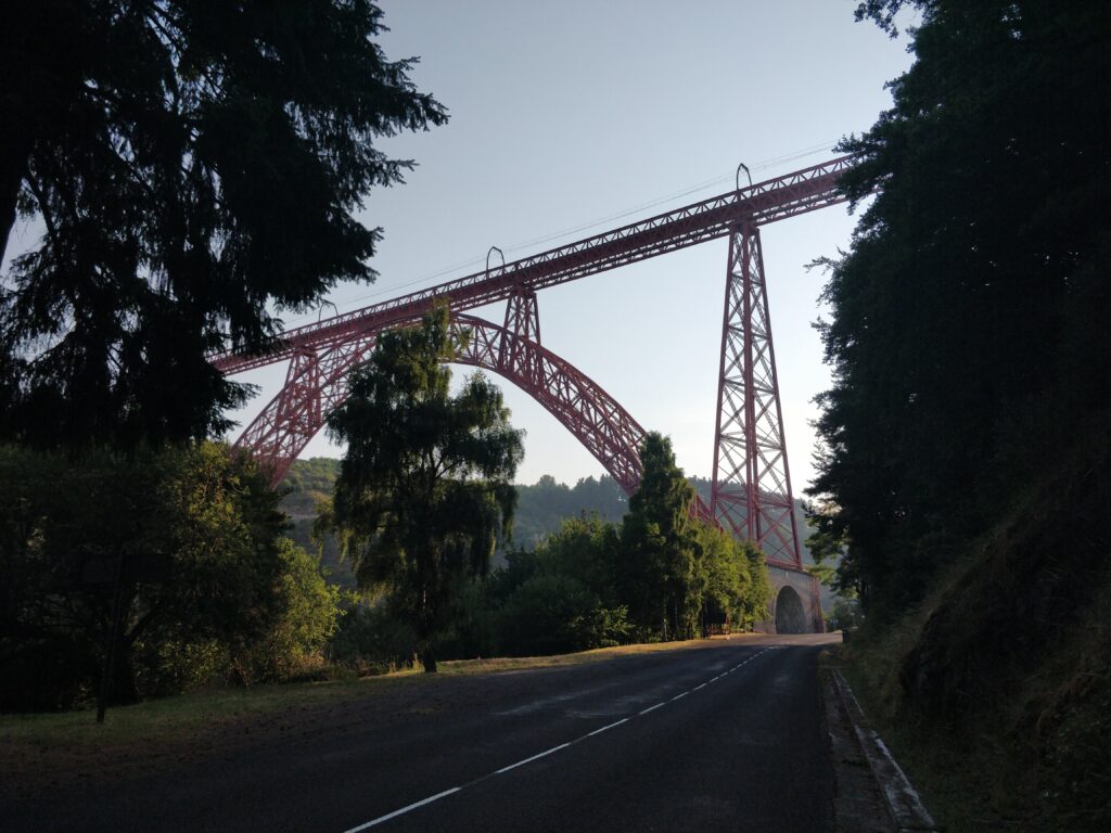 Je traverse la Truyère sous le majestueux Viaduc de Garabit-Eiffel qui domine la vallée du haut de ses 75m.