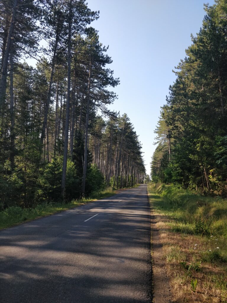 Un petit tour sur Park4Night me permet de trouver un super coin pour la nuit, un petit chemin menant à un bois à l’écart de l’agitation. Des tables de pique nique et un petit parcours de santé, les locaux y viennent se promener et se changer les idées.