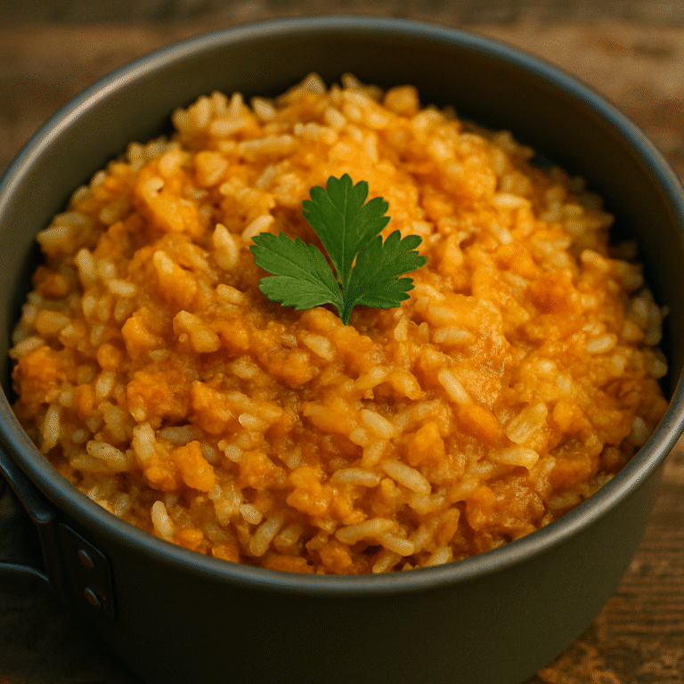 Un velouté épicé et réconfortant, parfait pour les soirée fraîches en bivouac.